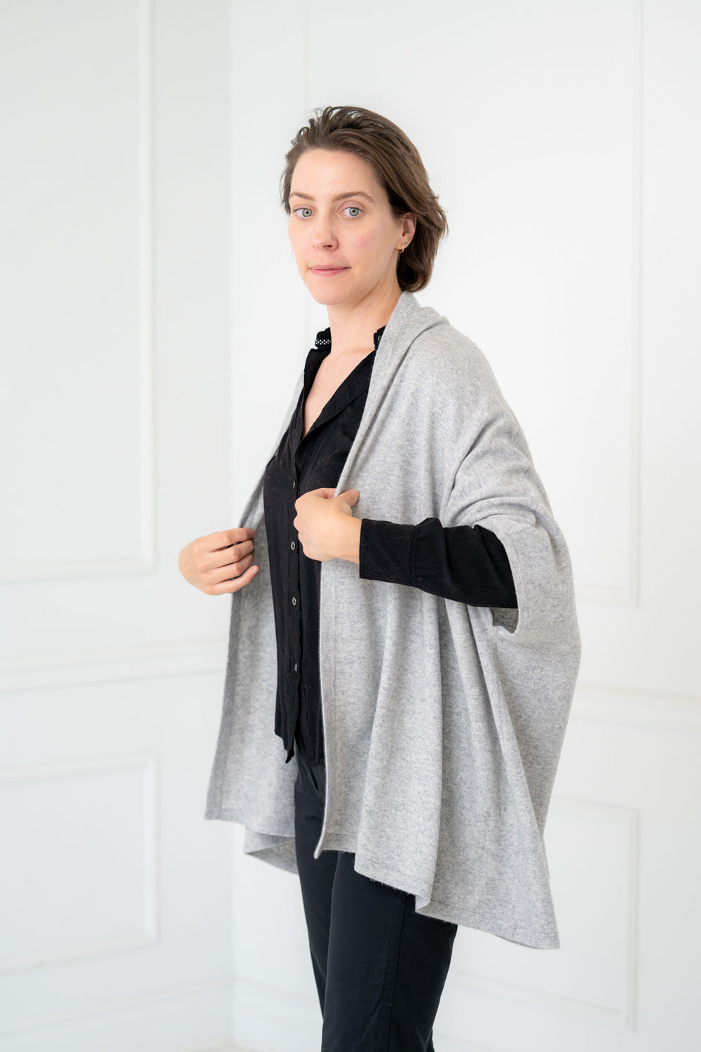 Soft and light weight, this versatile poncho will serve you well for years and years, only getting softer each time you wear it. It is buttery soft and lightweight with a beautiful drape and lose arm holes.