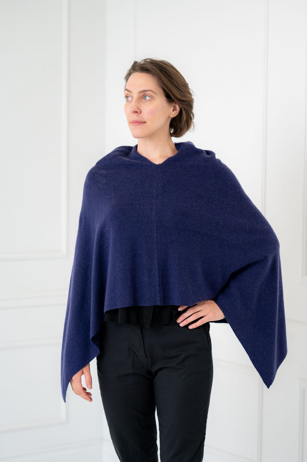 Material: 100% pure woven cashmere. Butter soft and light weight, this versatile poncho will serve you well for years and years, only getting softer each time you wear it. It fits over the head and can be worn on any angle front, side or back.