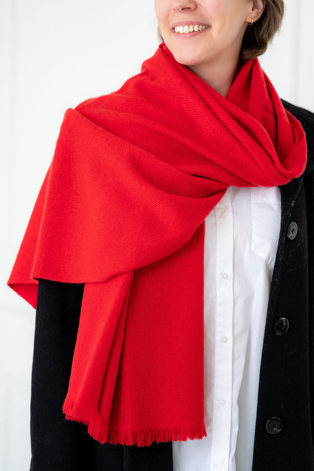 This scarf was woven by a socially ethical weaving collective in Kathmandu Nepal where the owner treats his staff like extended family with fair wages, work hours and time off.