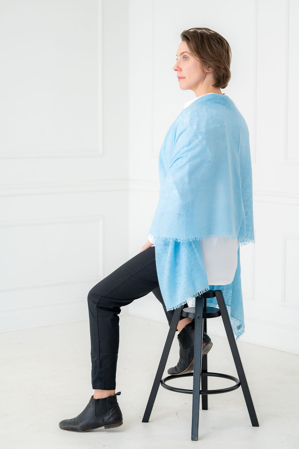 Pure Cashmere Powder Blue Felted Scarf