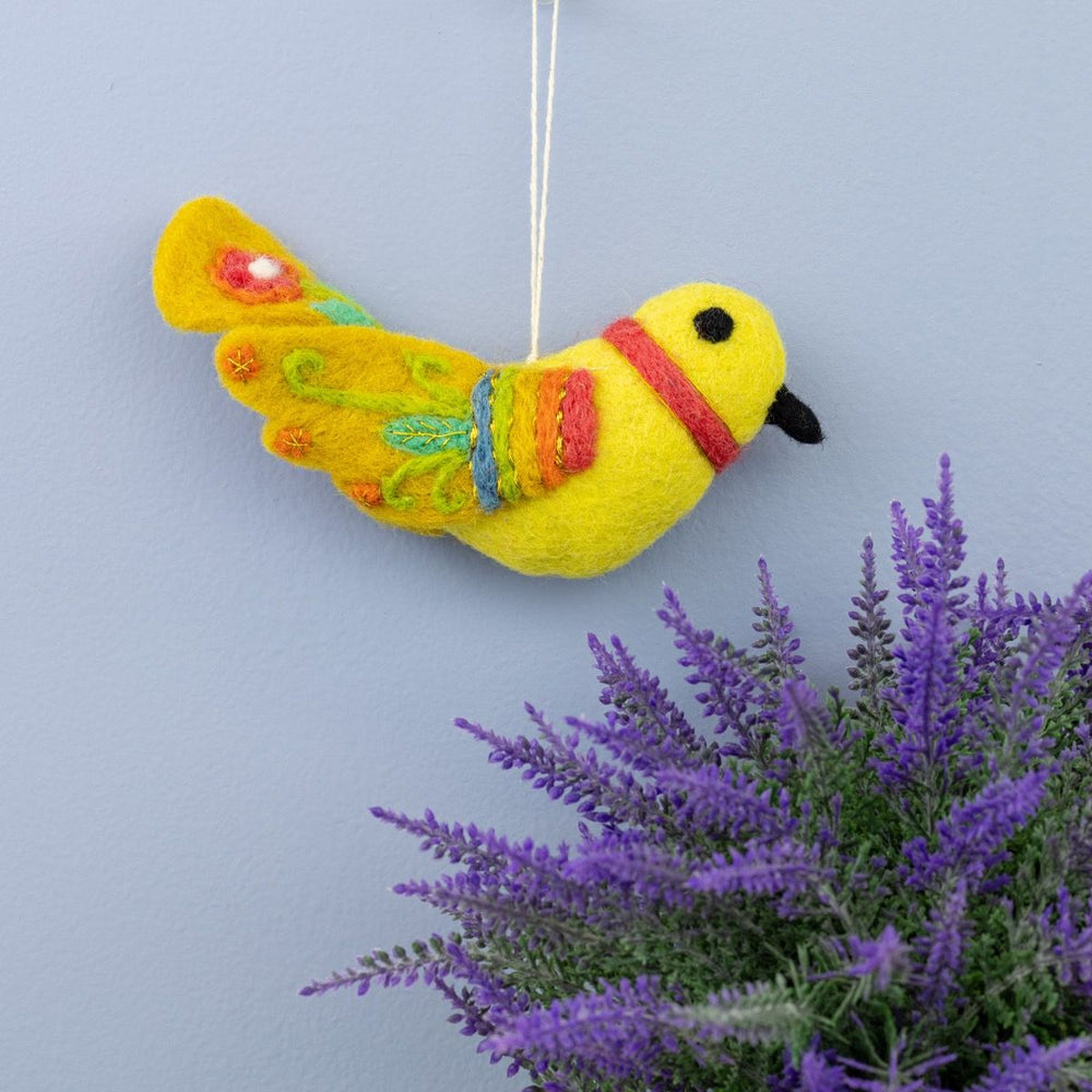 Yellow Embroidered Bird Ornament